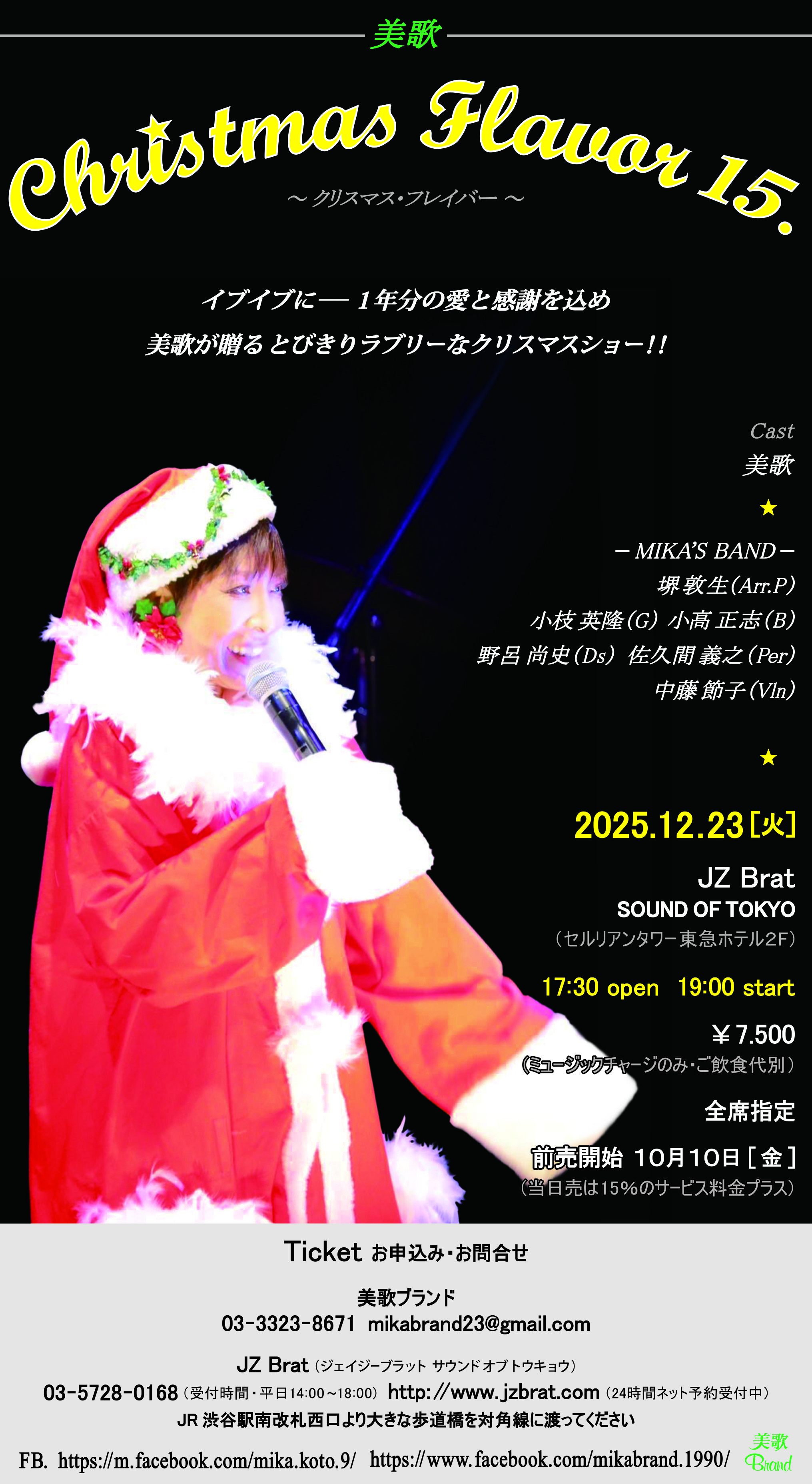 美歌(Vo) MIKA’s BAND: 堺敦生(Pf) 小枝英隆(Gt) 小高正志(Ba) 野呂尚史(Ds) 佐久間義之(Per) 中藤節子(Vln) |