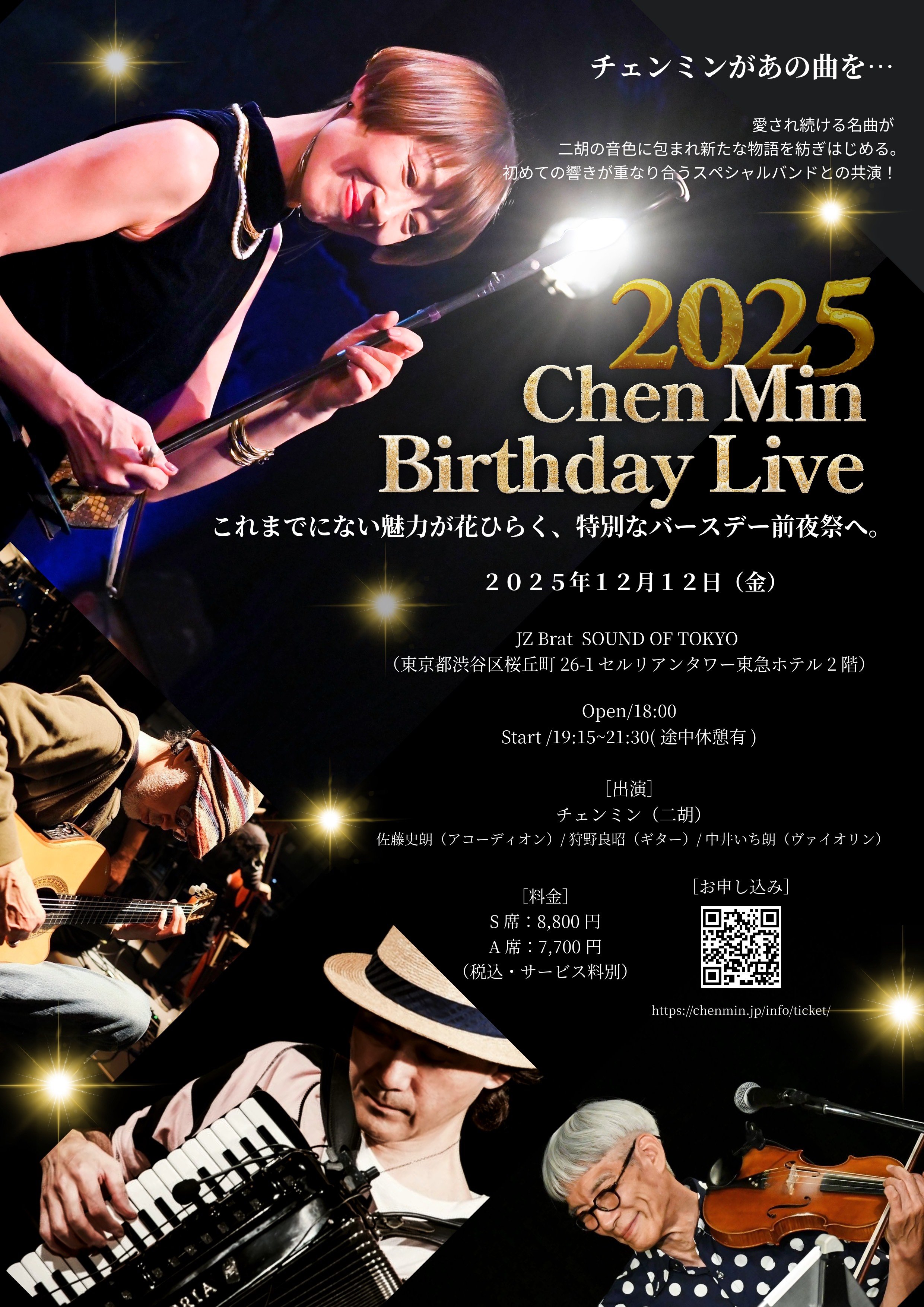 入替なし VIP(最前列&特典付)¥10,000 一般 予約・当日¥5,500 ※税込・サービス料別 |