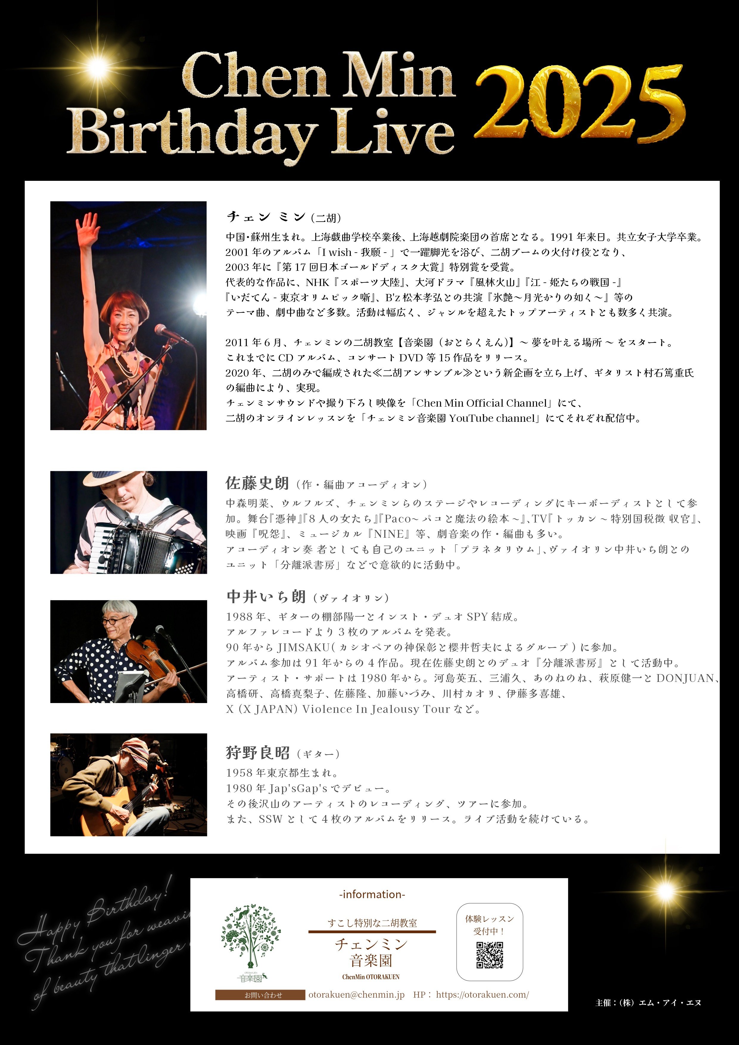 チェンミン(二胡) 佐藤史朗(Accor) 狩野良昭(Gt) 中井いち朗(Vln) |